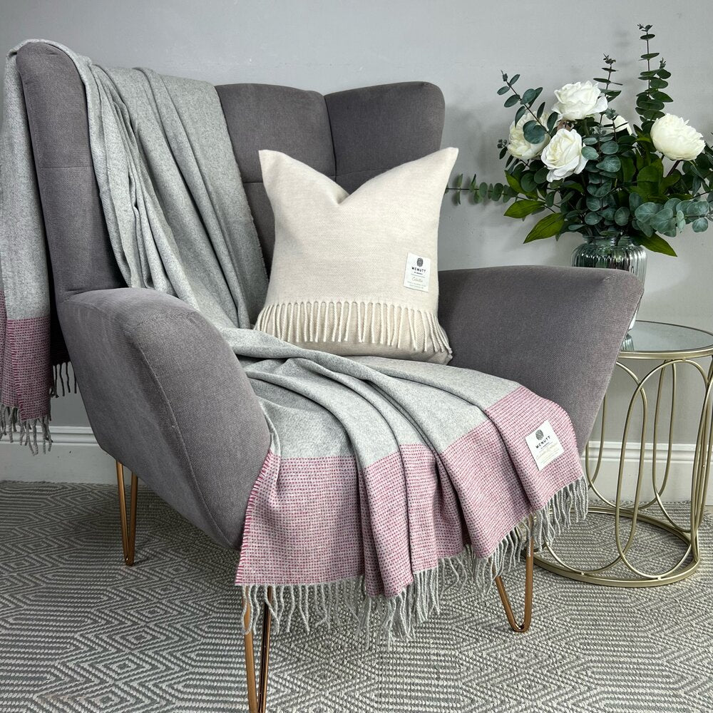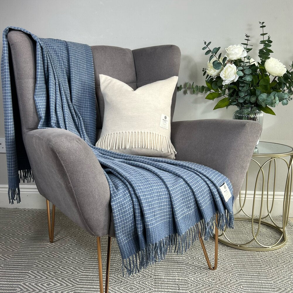 This supersoft cashmere and merino blanket comes in two stunning check designs: Oisin and Roisin.