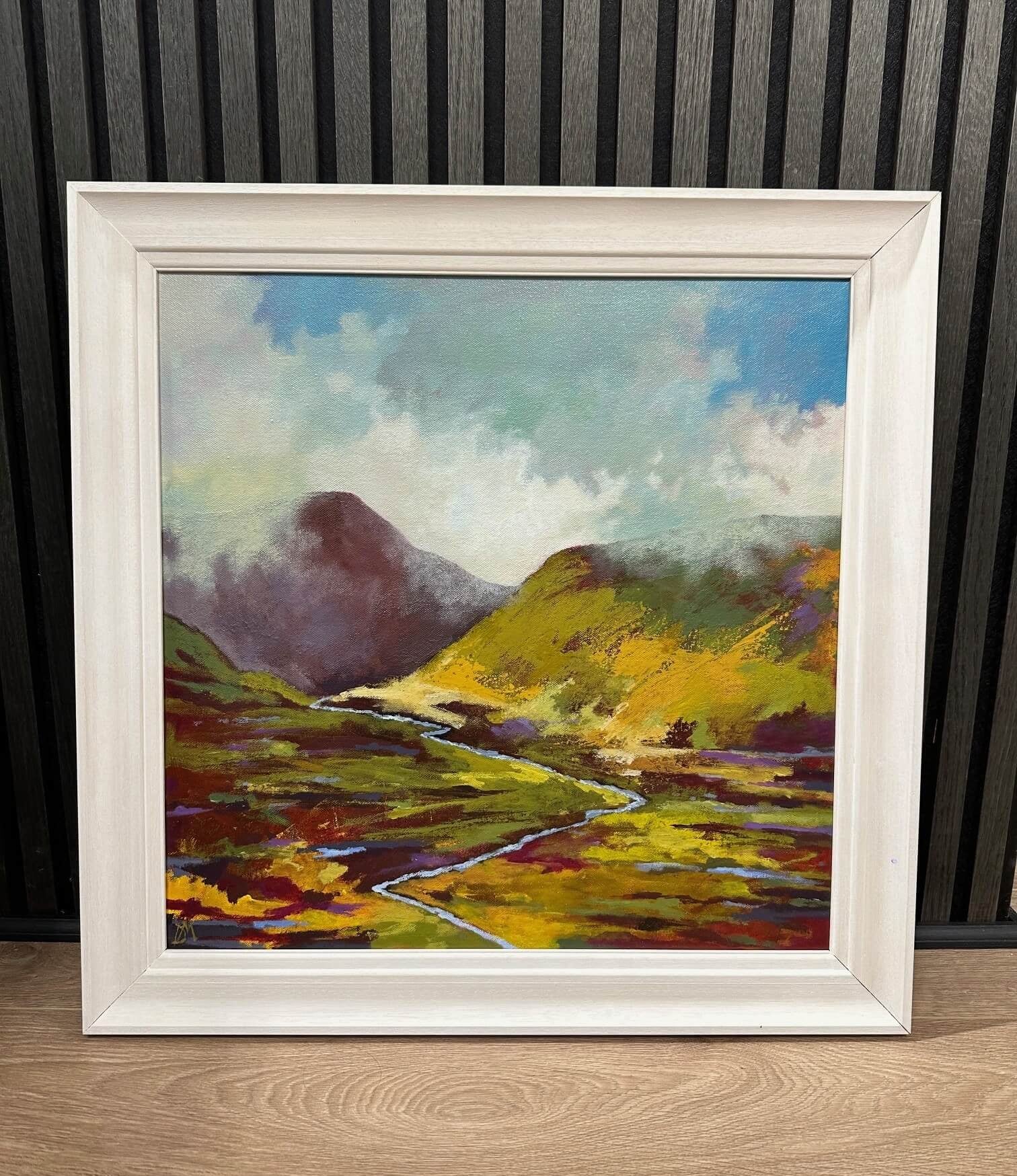 Acrylic on Board, framed in a White Frame.