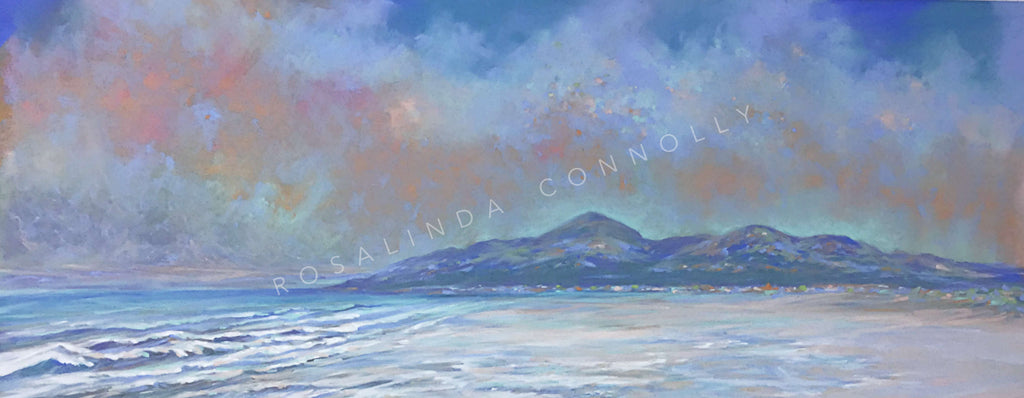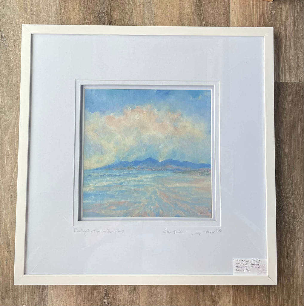 Linda is quietly drawn toward seascapes, though her work also often features our stunning Mourne Mountains. There is a great balance of the sea's energy in her paintings and a sense of calm and serenity. They have been exceptionally popular in the shop and we are thrilled to now offer them online.