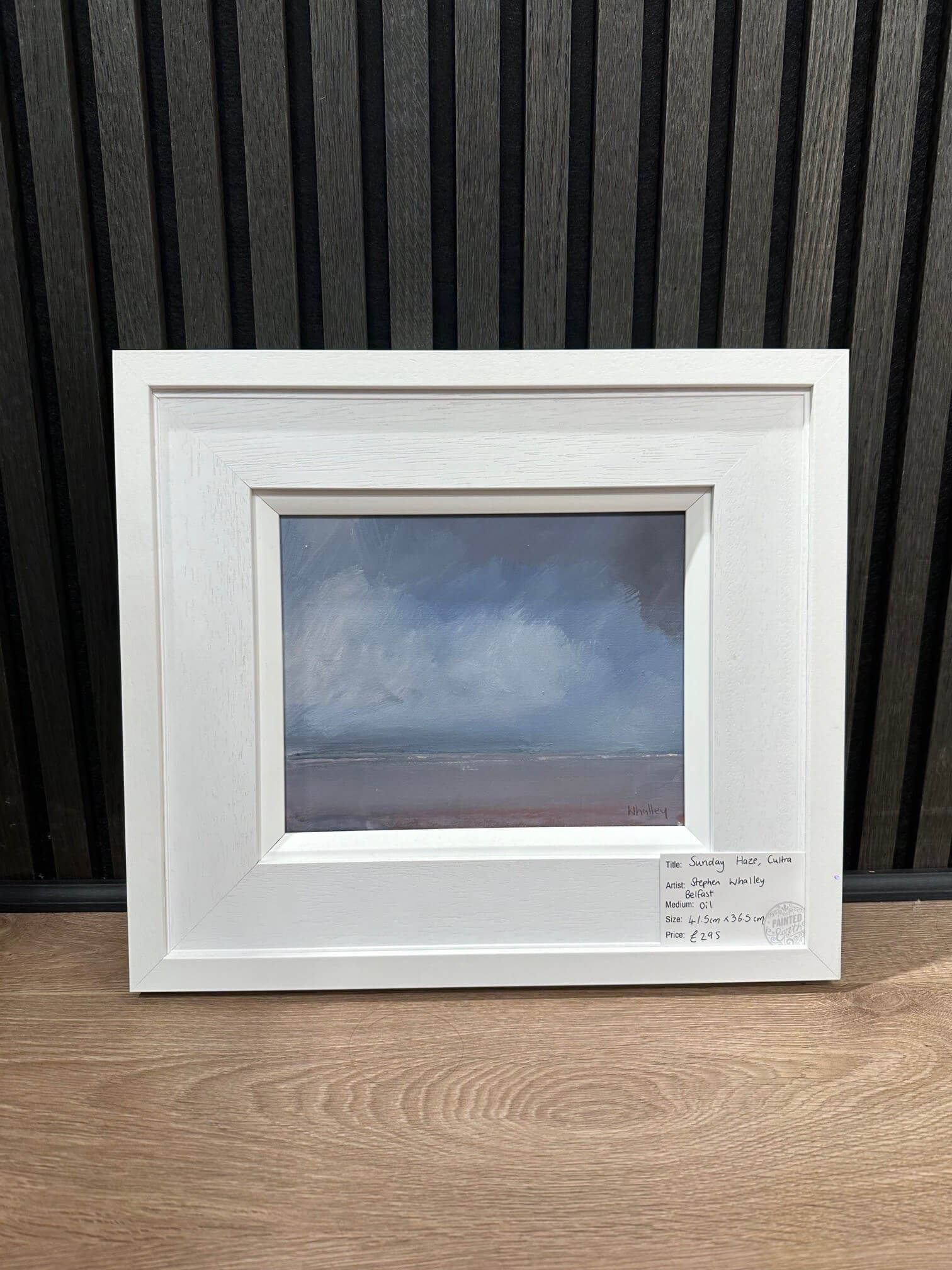 An intuitive painter, Stephen uses a free style to paint washed out, moody hues for the sky’s while choosing knives and metal with which to apply details in oils in a more stylized way.