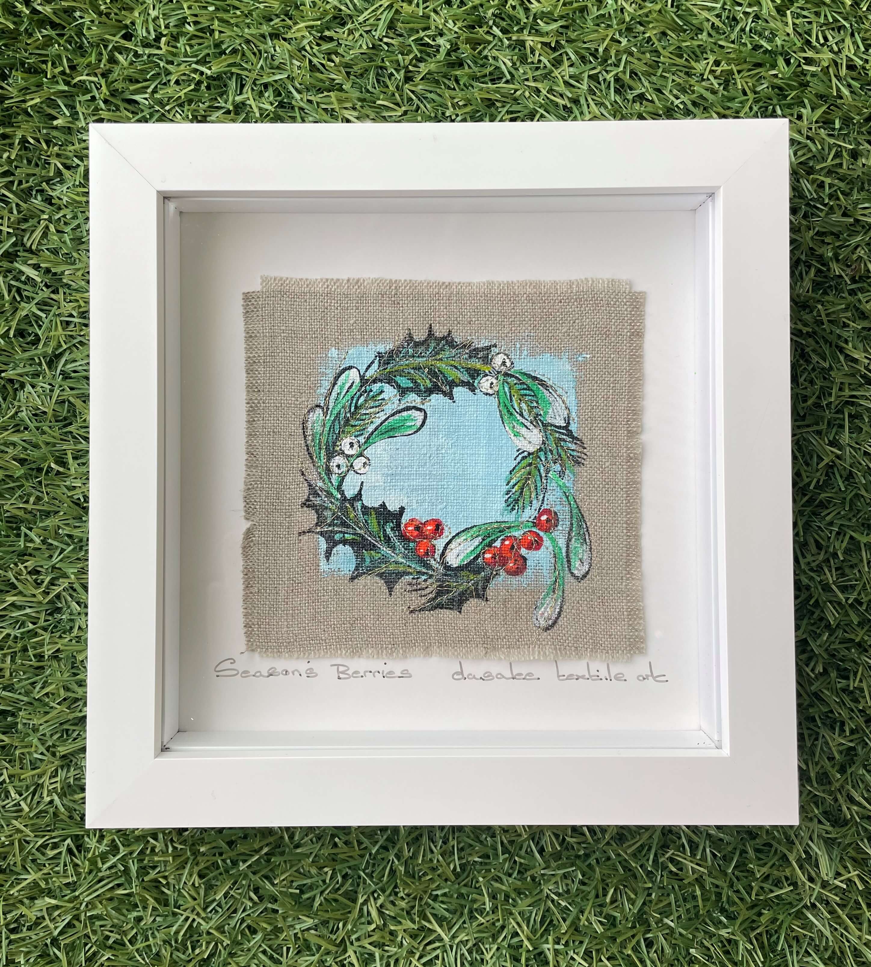 Season Berries - Handpainted Irish Linen Wall Art Framed
