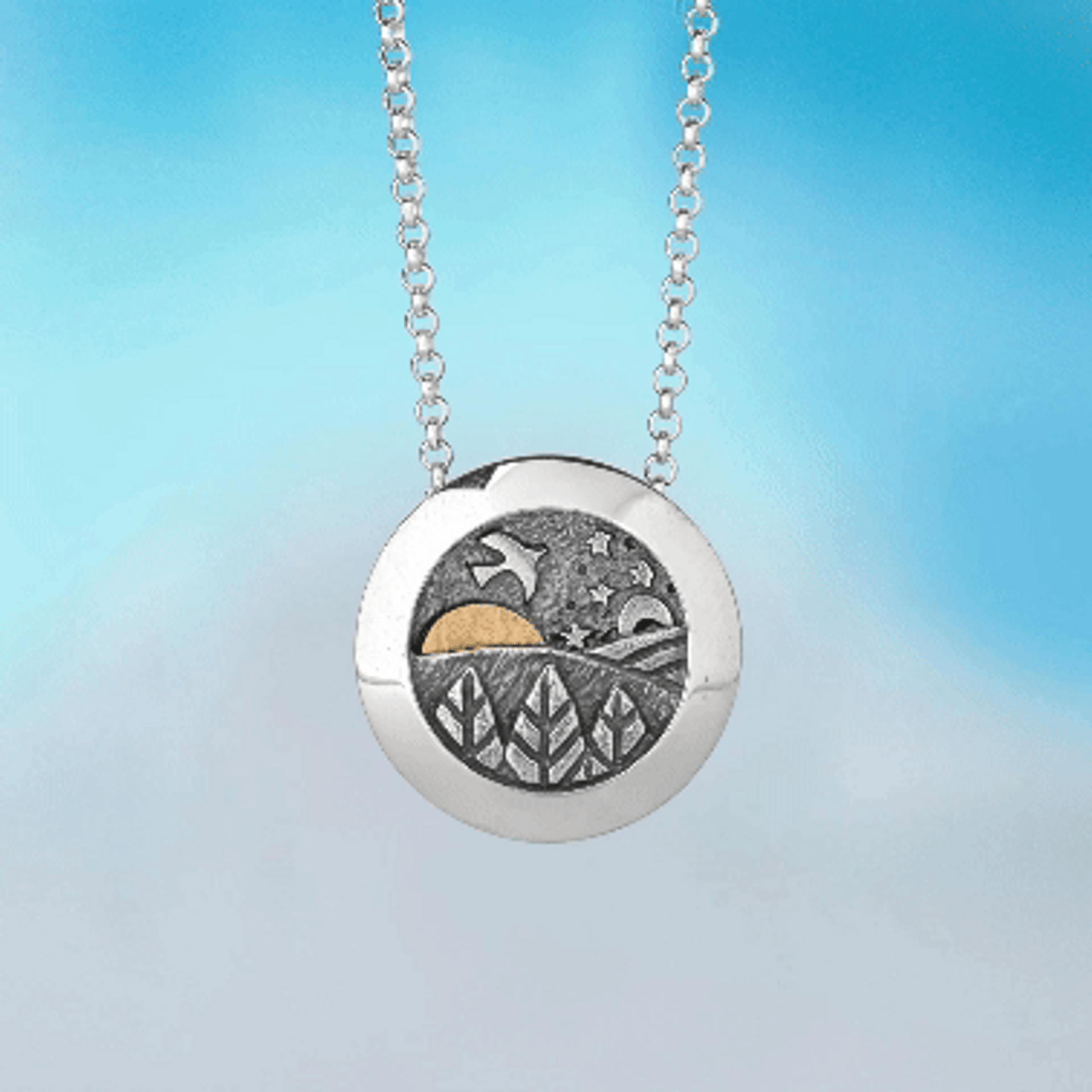 Silver with 18kt Gold sun