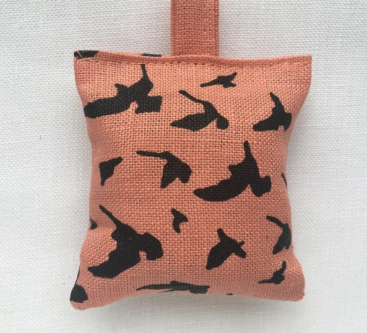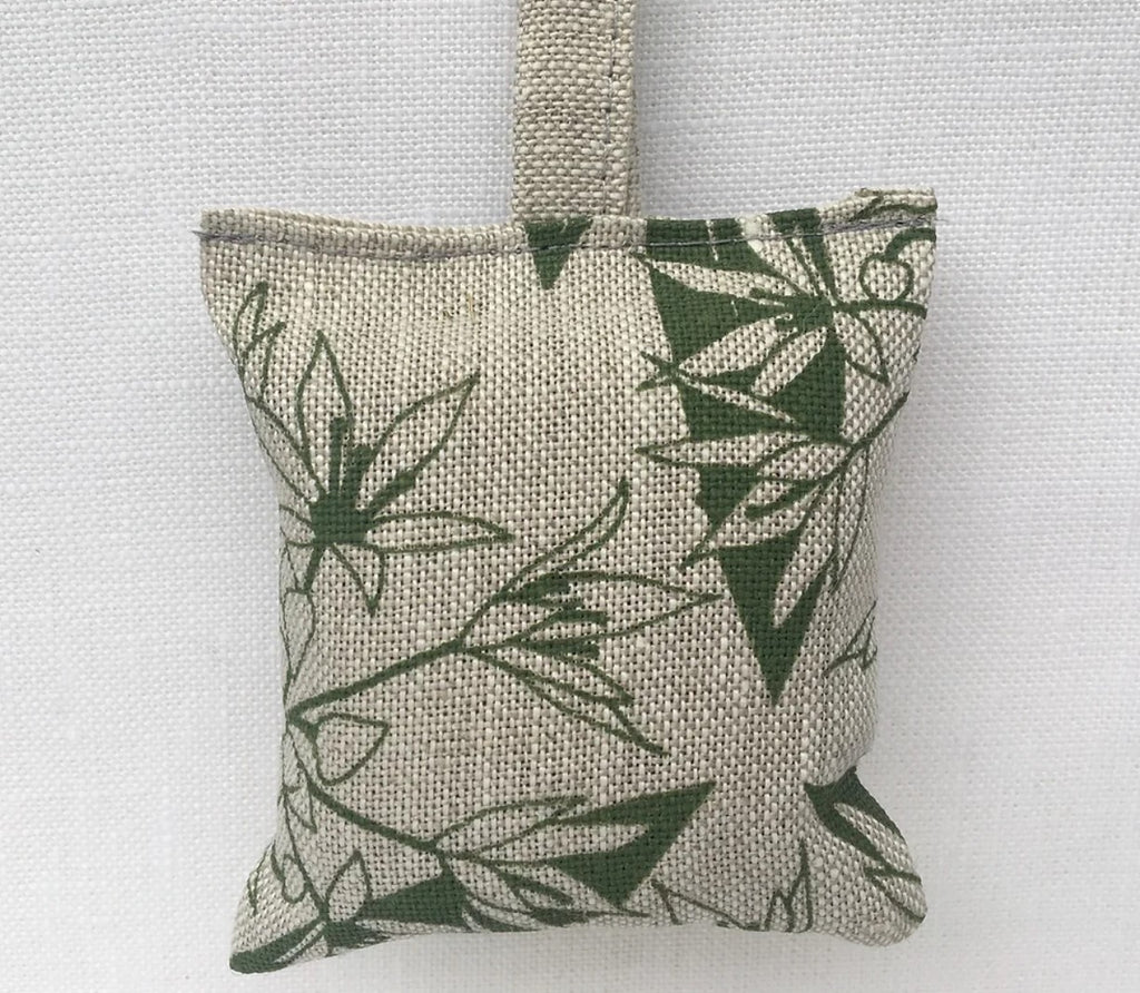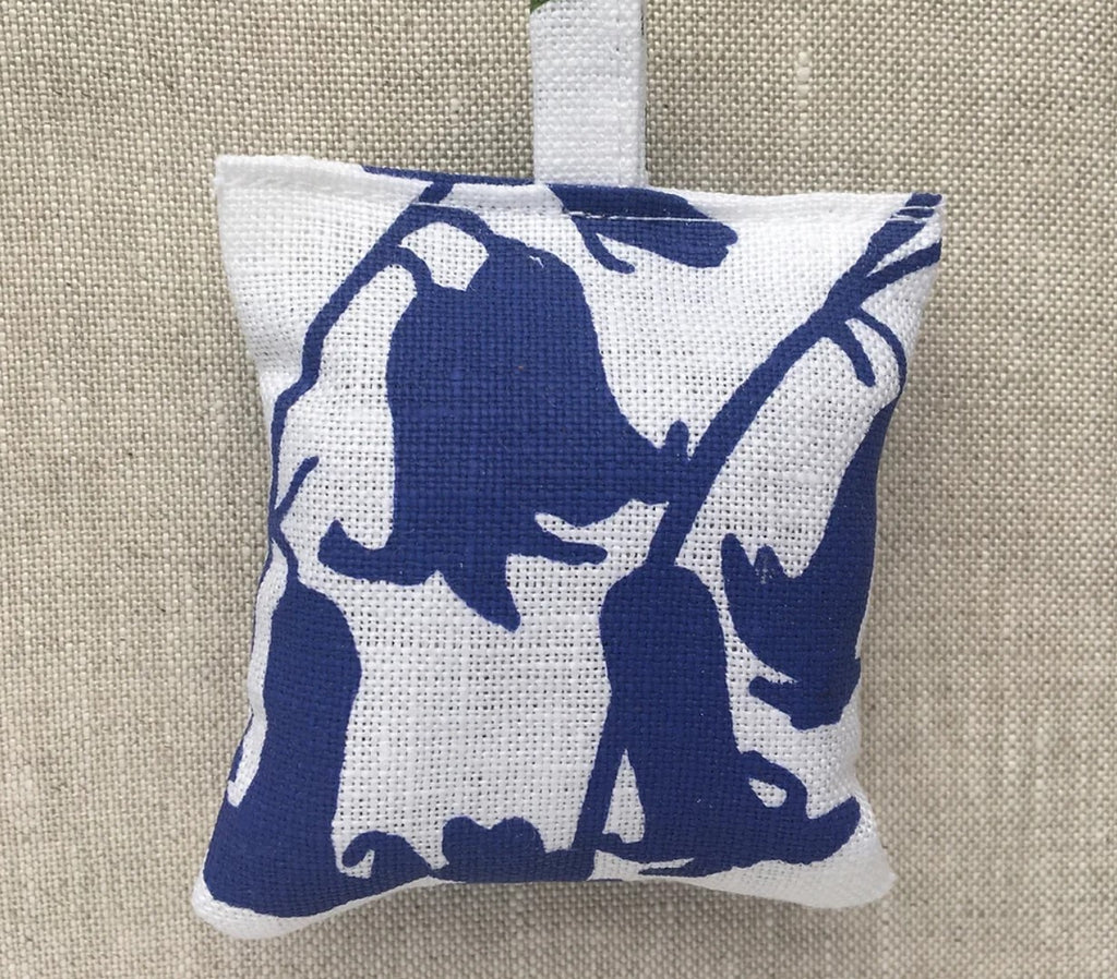 Handprinted Irish linen sachet, filled with aromatic lavender. Perfect for your suitcase or wardrobe, to keep your clothes smelling fresh.