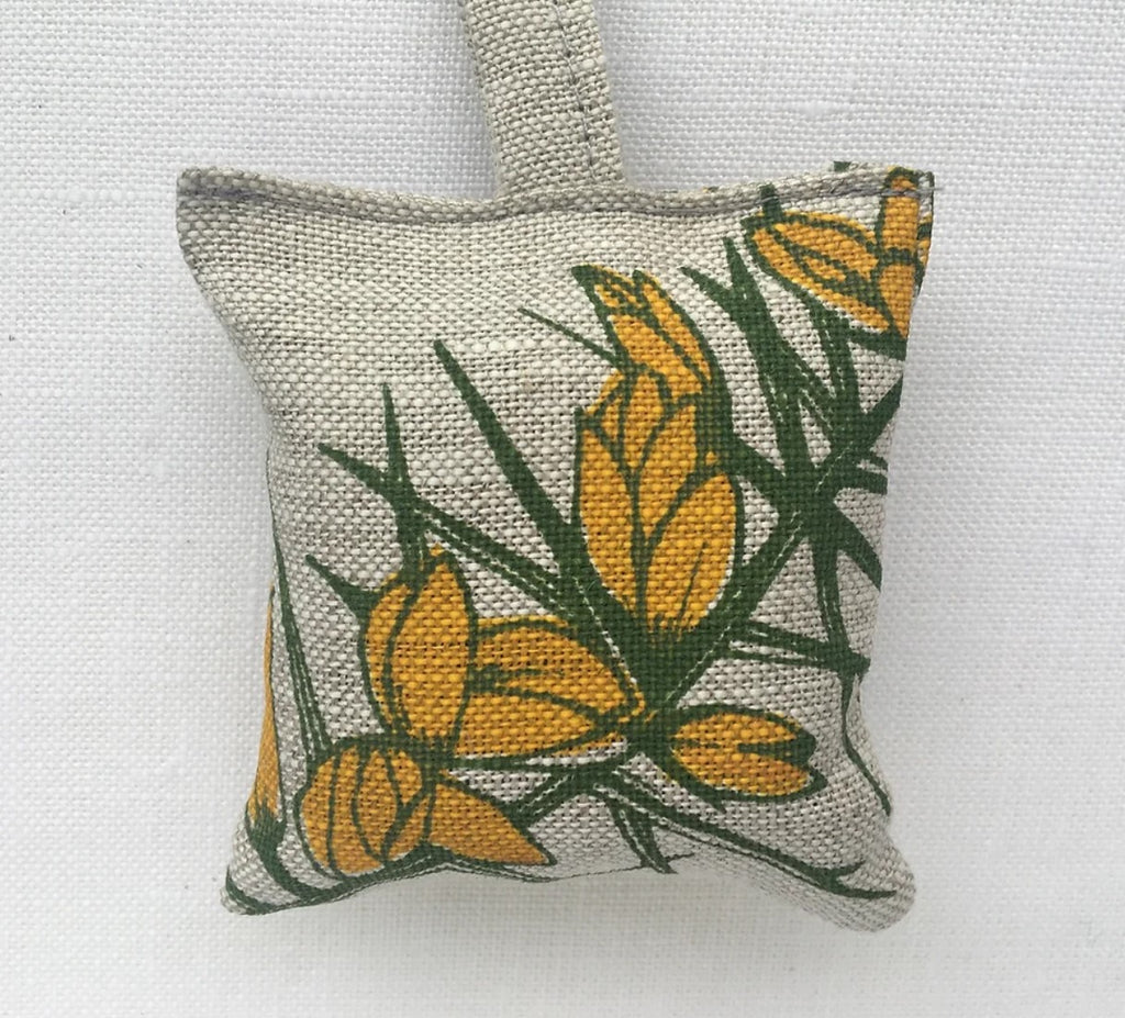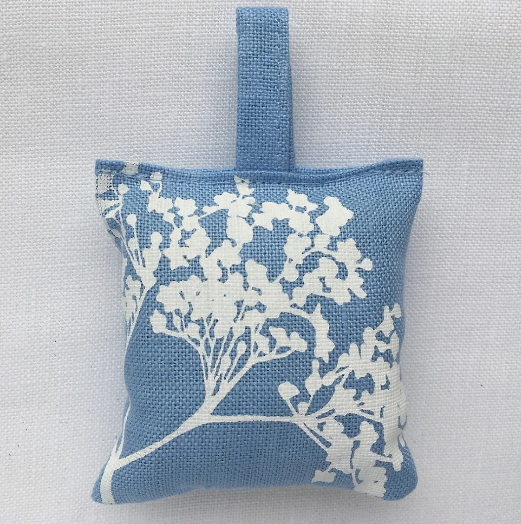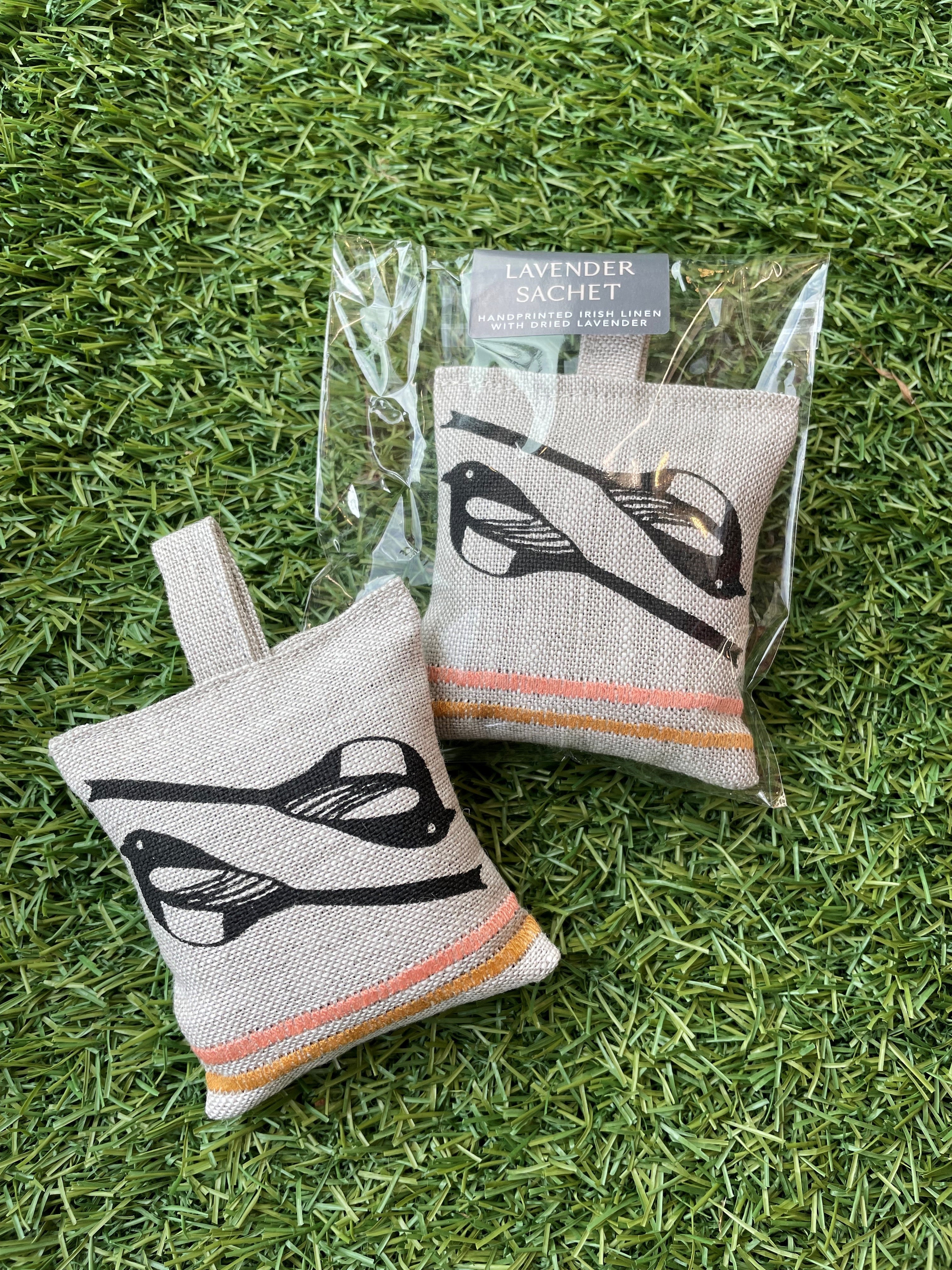 Handprinted Irish linen sachet, filled with aromatic lavender. Perfect for your suitcase or wardrobe, to keep your clothes smelling fresh.