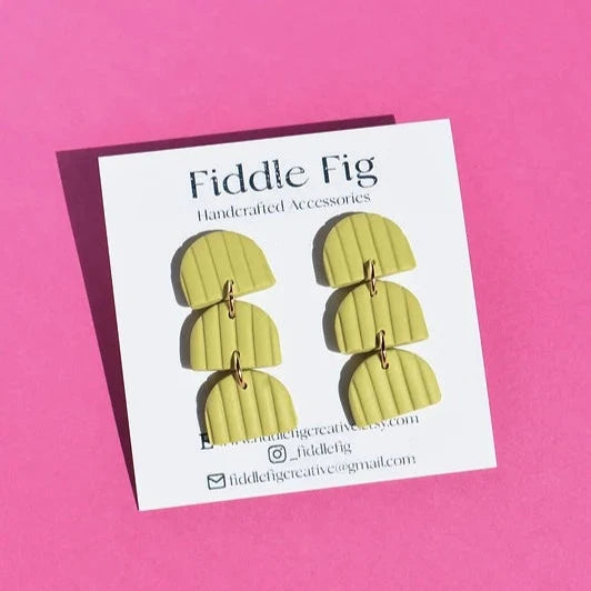 Chartreuse  with lined texture polymer clay earring with stainless steel earring posts and butterfly clasps.