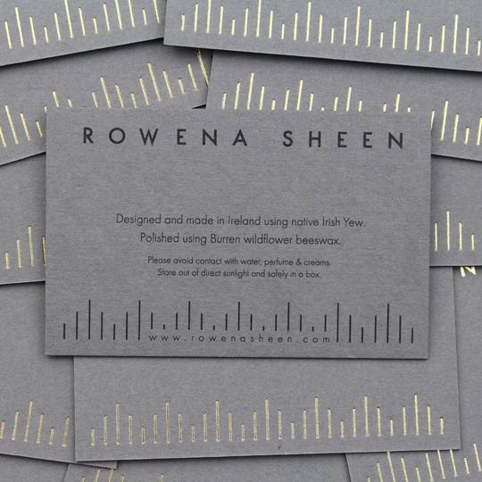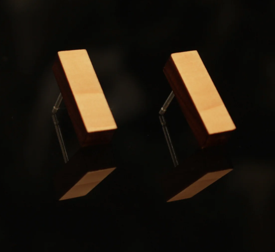 These small rectangular studs are the perfect addition to a minimalist wardrobe. They are made in either natural or ebonised native Irish yew, and are polished with Burren wildflower beeswax for a beautifully smooth finish. They are attached to a sterling silver ear post with a butterfly back and measure 1.5cm x 0.6cm.