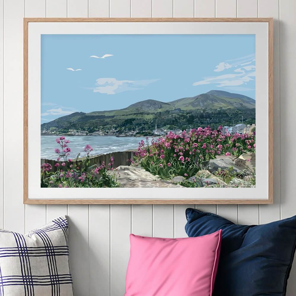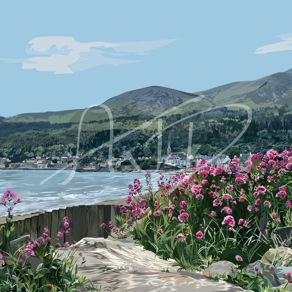 Hyper-realism illustration of the beautiful Mourne Mountains, situated in Newcastle County Down. Whether it’s day trips with family, or camping and hiking with friends, this detailed landscape piece will be a cherished reminder of good times by the shore! The design has been digitally illustrated by hand, with each colour and shape individually drawn and layered to bring depth as well as a stunning natural palette.