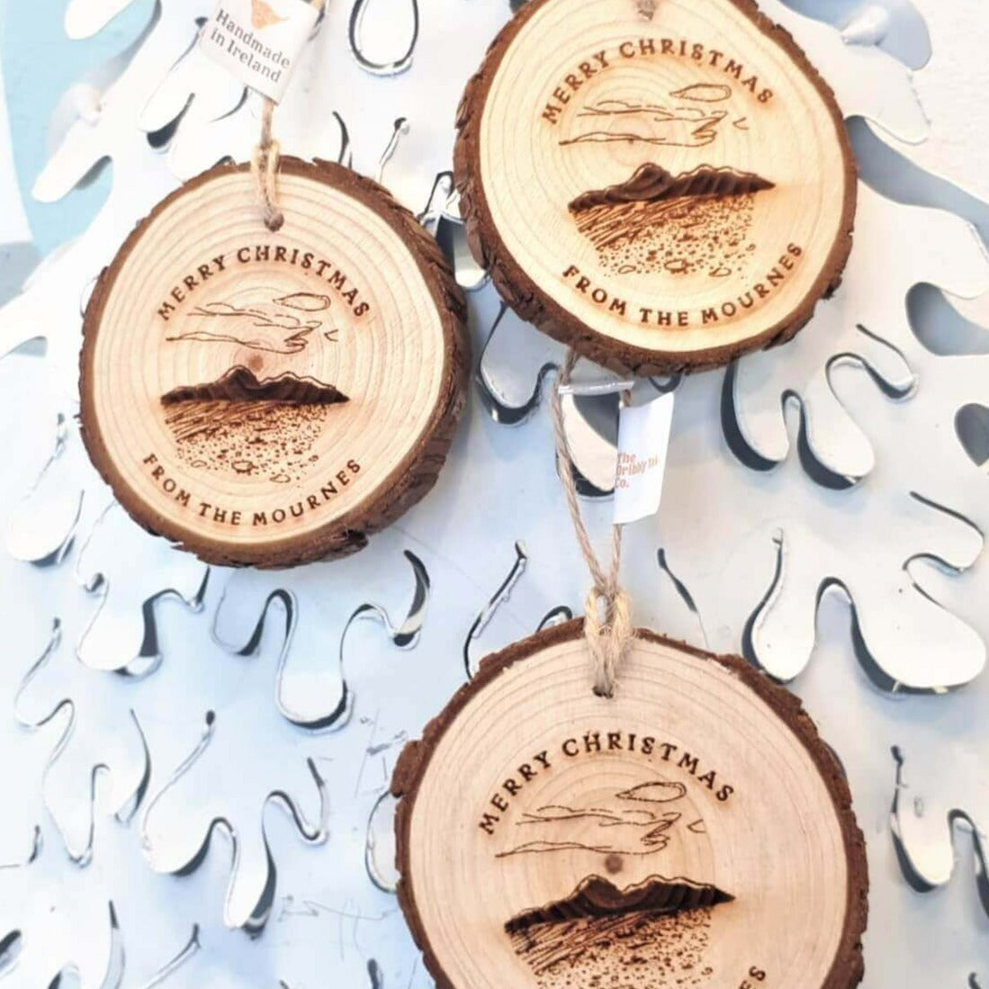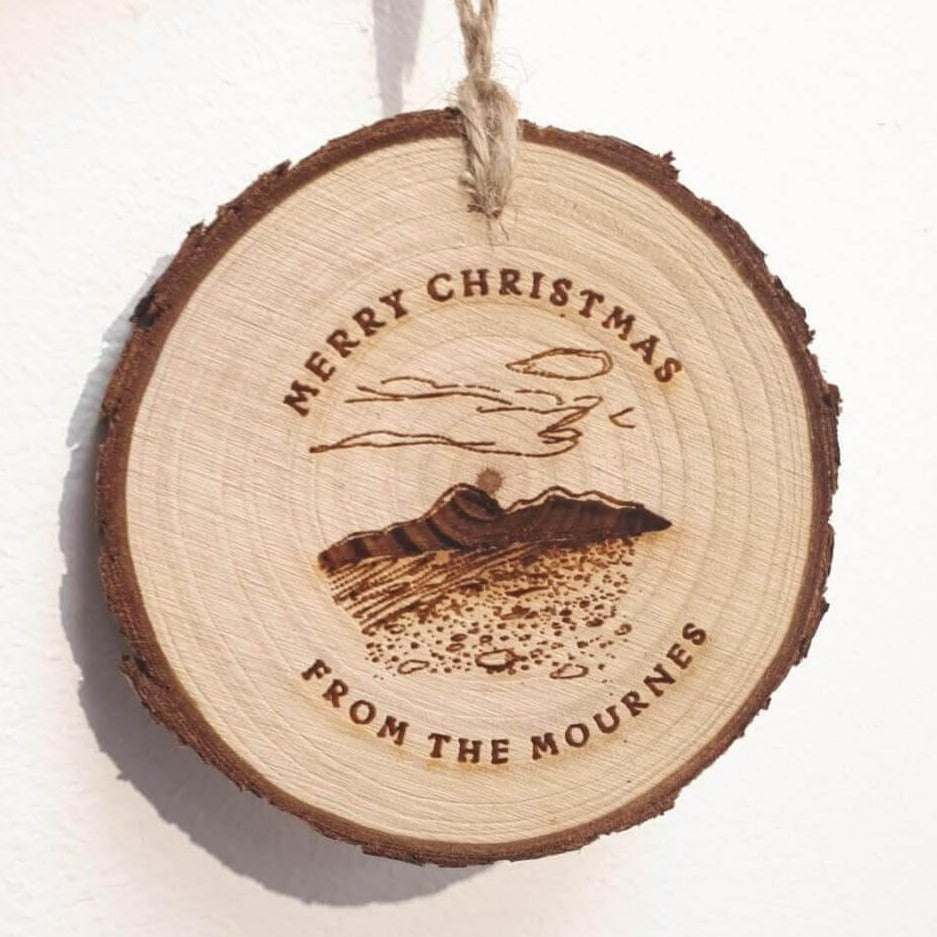 Send some Christmas wishes from the Mournes to your loved ones. These wooden discs feature the backdrop of the stunning Mourne Mountain range and a unique little gift or a nice addition to your Christmas décor. They are perfect to pop into the post as they are very light and sturdy!