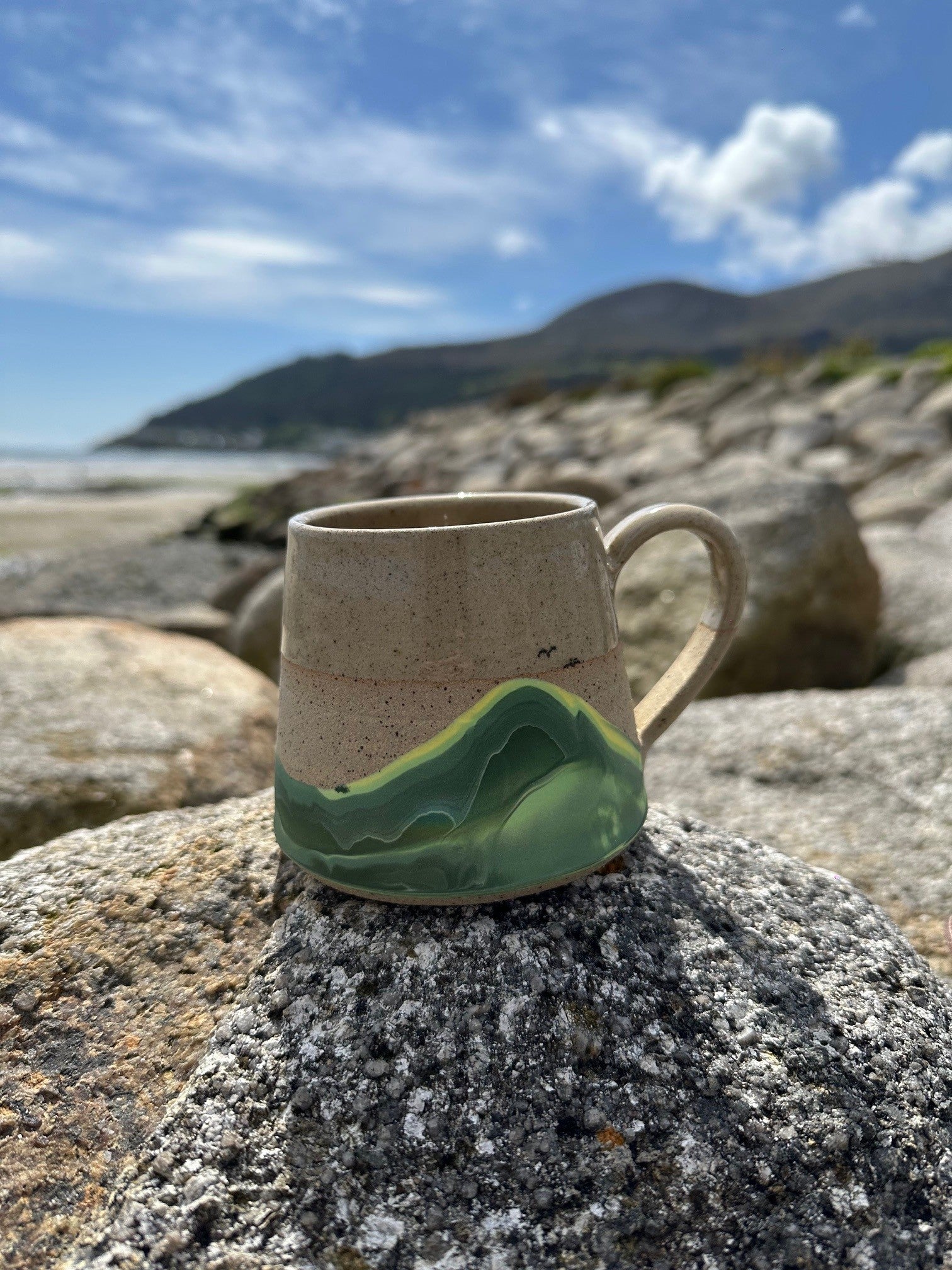 These mugs are inspired by the beautiful Mountains of Mourne in Northern Ireland. Handcrafted in a rustic Donegal Speckle Clay, each mug is handthrown, carved and painted by our team of skilled potters.