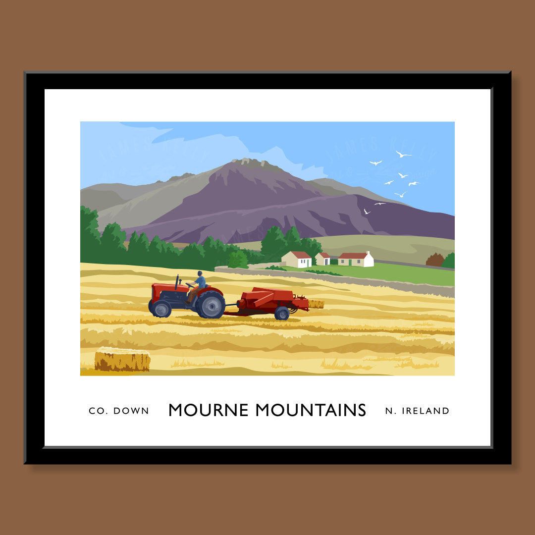 Mourne Mountains, Tractor and Hay Baler Print