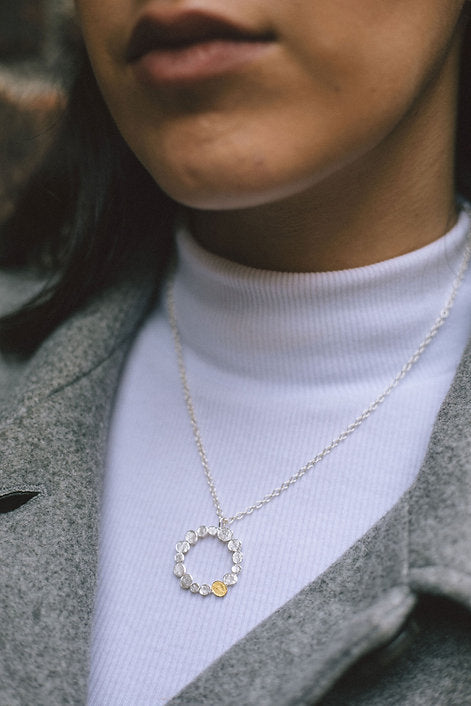 Like finding that one of a kind pebble on the beach. A crown of textured silver and a rich 22ct gold, flat pebbles. Designed for that special person or time in your life.