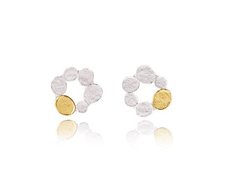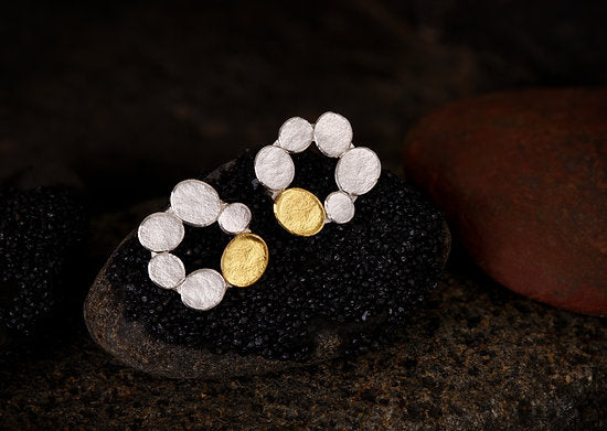 Like finding that one of a kind pebble on the beach. A crown of textured silver and a rich 22ct gold, flat pebbles. Designed for that special person or time in your life.