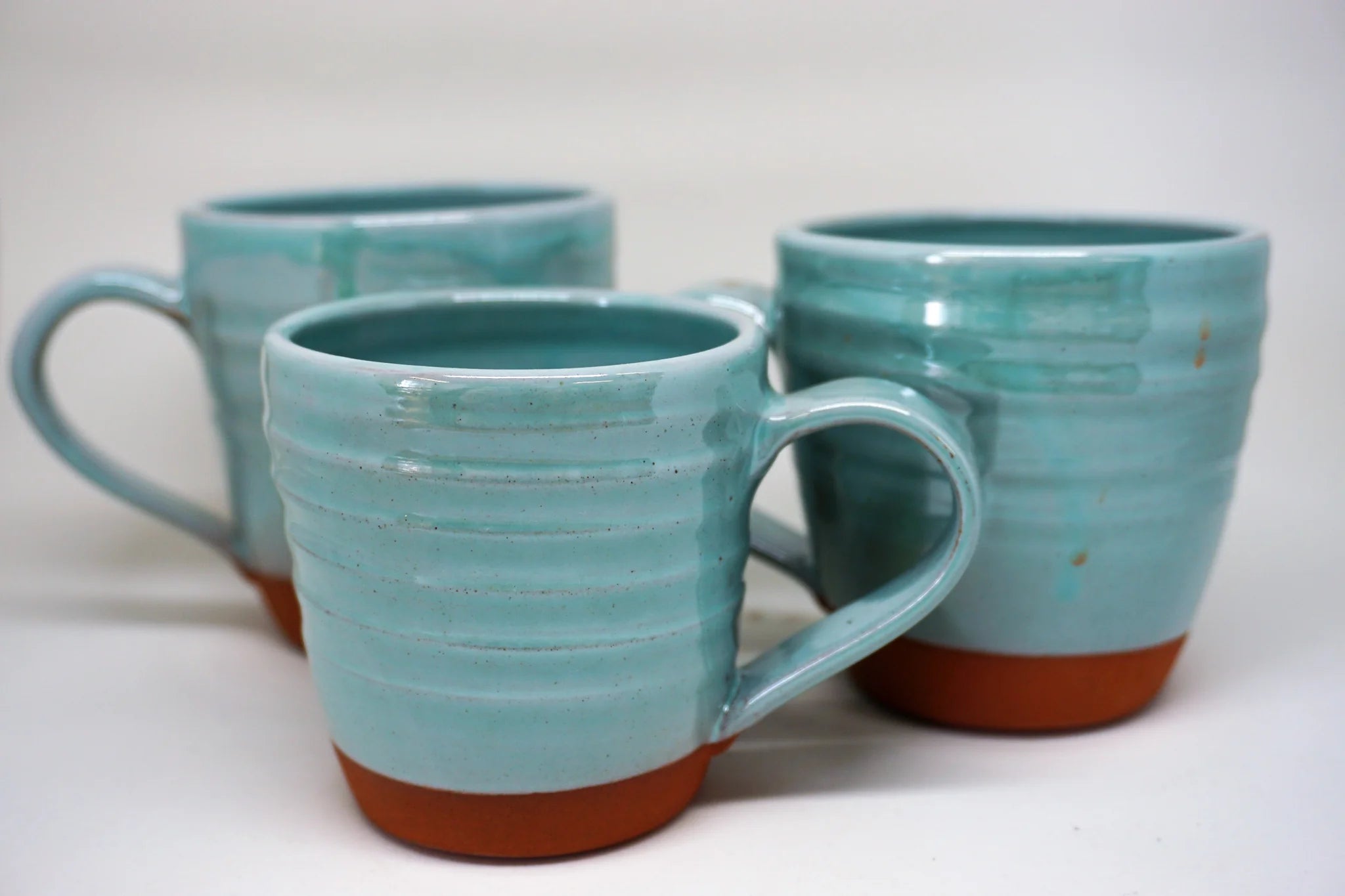 Small mug for tea and coffee, handmade glazed terracotta, soft turquoise glaze, dishwasher safe.