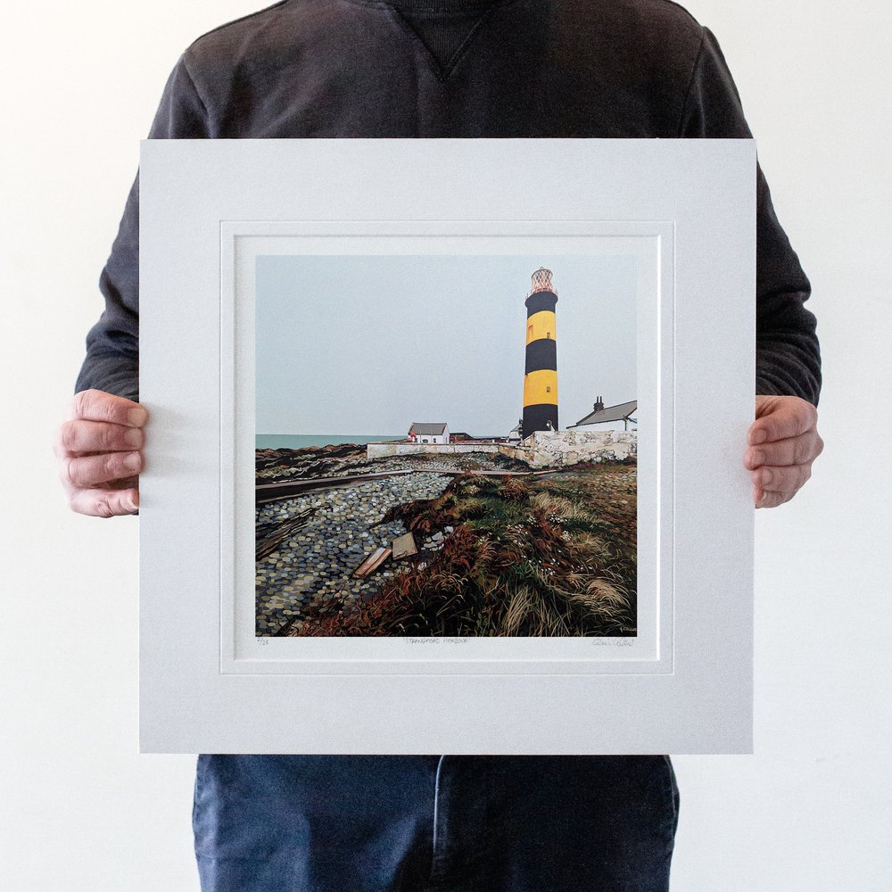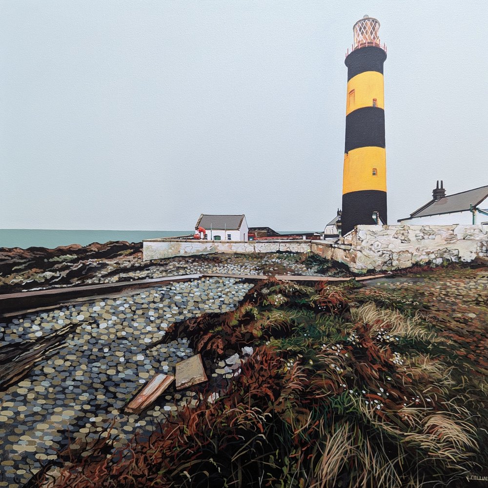 Stunning print of the St John's lighthouse by Kevin Collins. With a background in handloom weaving, his brush strokes emulate the warp and weft of weaving, resulting in a textural and woven appearance.