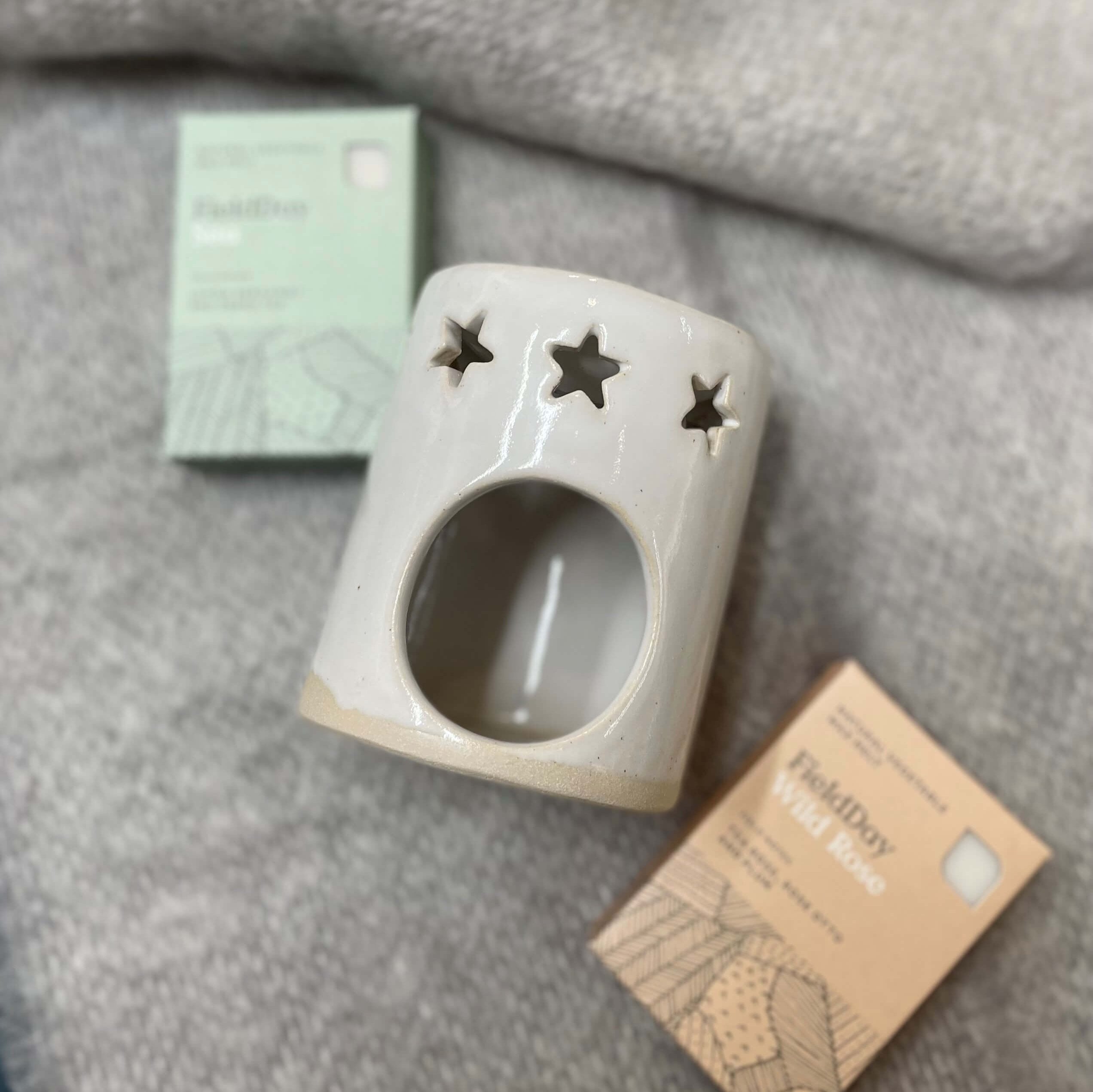 Lovely ceramic wax melter perfect as a wee gift to fill your home with fragrance, just pair with your favourite wax melt. Handmade by our very own staff member Megan Hawthorne. Megan is a local ceramist based in Rossglass Co. Down. Each piece is handmade in Megan's studio by the sea ♡