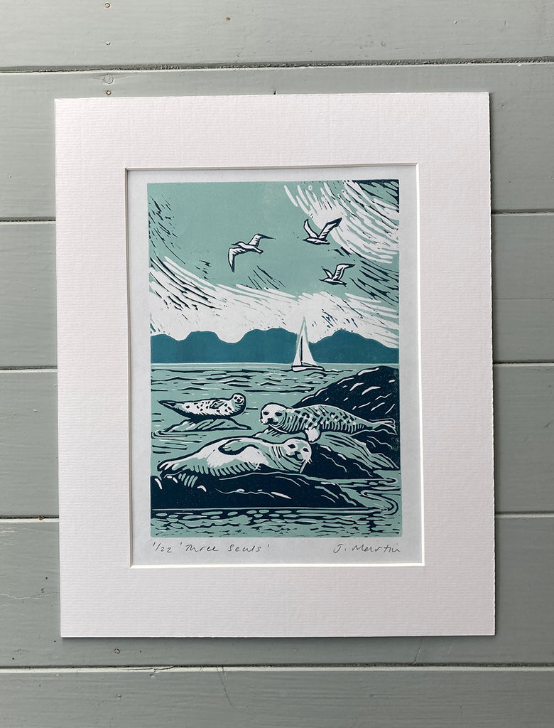 'This original linocut print was hand carved and printed using a small press in my garden studio in County Down. It would make the ideal gift for people who love nature, the sea and the coast. This limited edition print would make a beautiful unique, handmade gift.'- Joanna Martin.